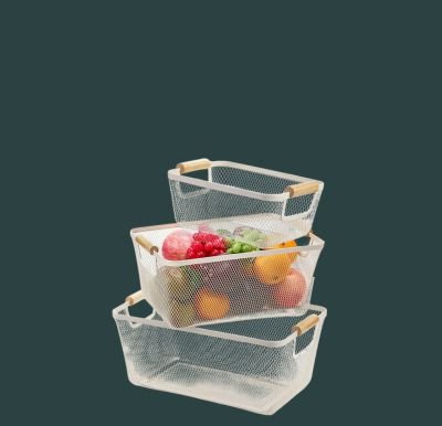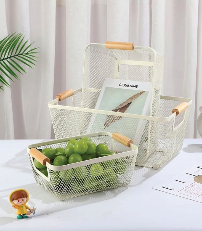 (Large Size) Basket, Multipurpose Metal Mesh Kitchen Storage (Off White)