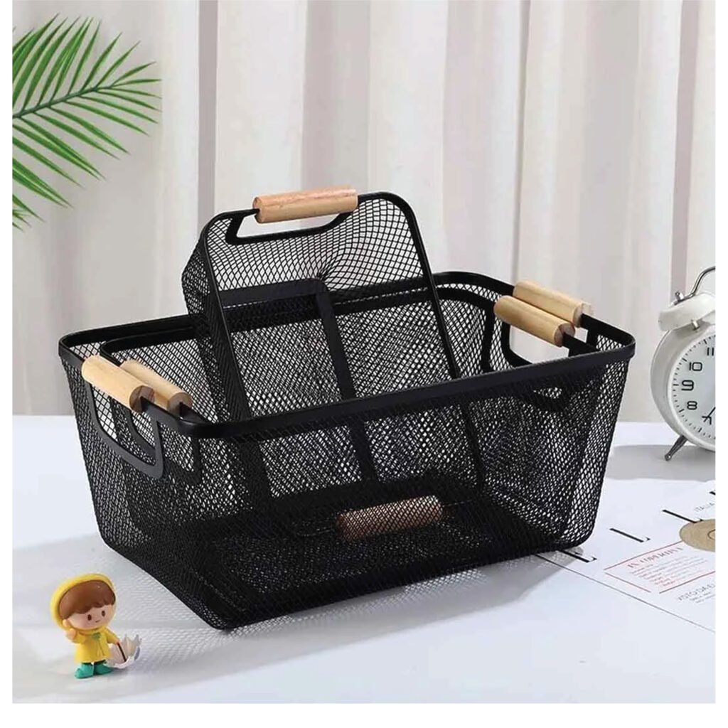 (Medium Size) Basket, Multipurpose Metal Mesh Kitchen Storage (Black)