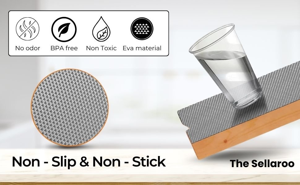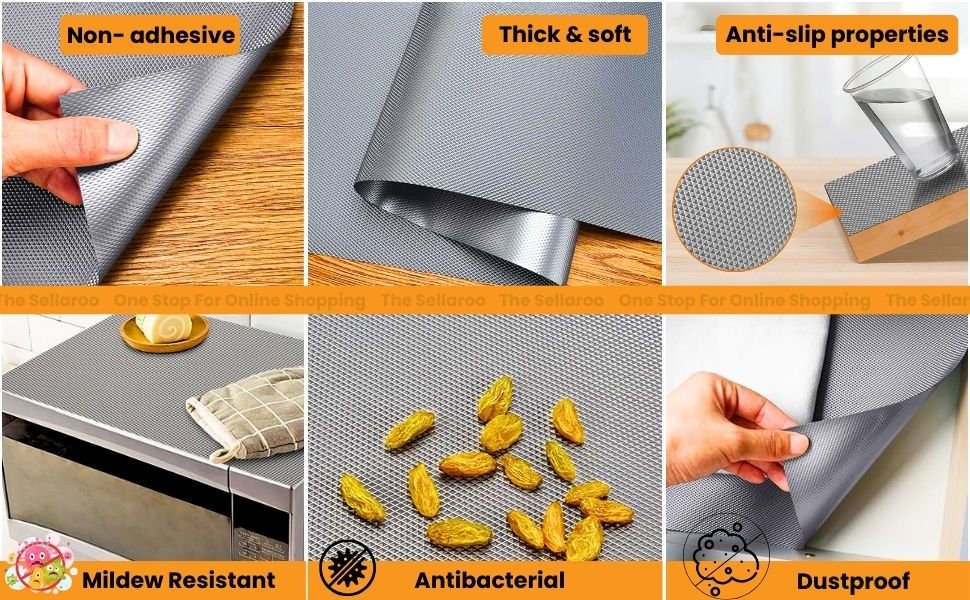 - Anti-Slip Surface: The mat features a textured surface that provides excellent anti-slip properties, keeping items securely in place and preventing them from sliding around. This makes it particularly useful in refrigerators, cabinets, or drawers where bottles, jars, or utensils might move.