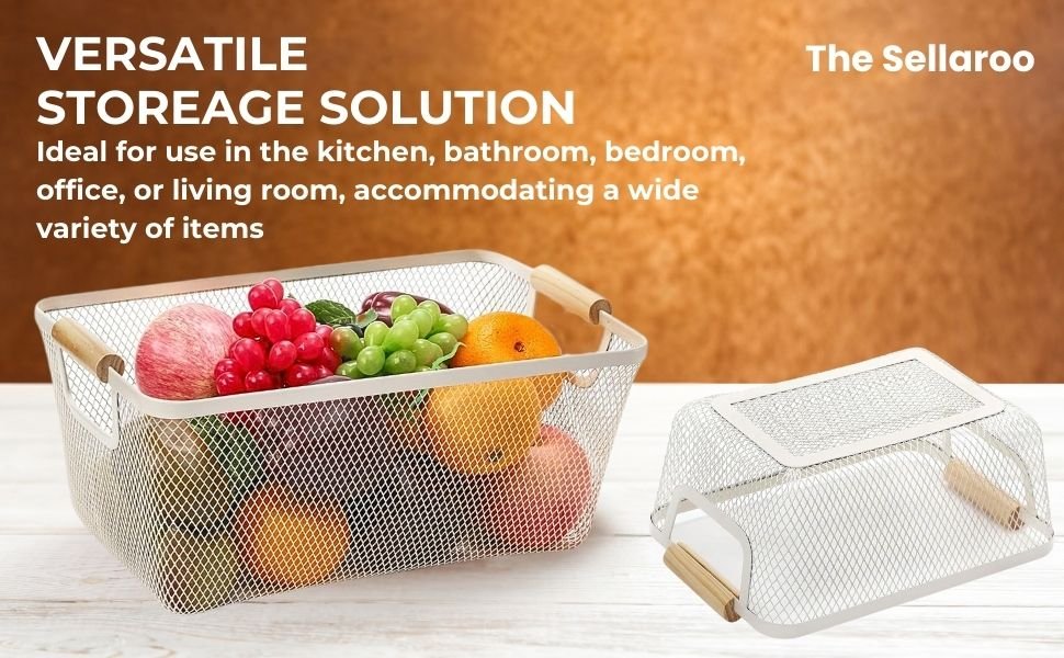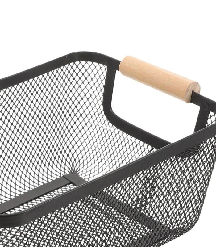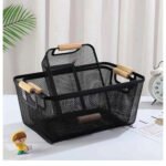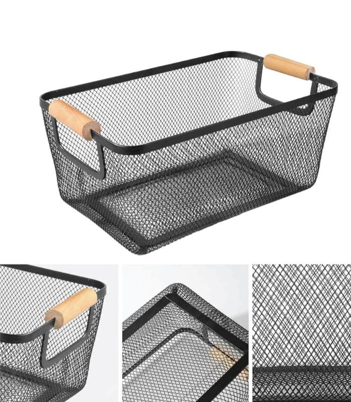 Multipurpose Metal Mesh Kitchen Storage Basket with Wooden Handles | Organisers Storage Box for Clothes, Kitchen accessories | Portable Storage Baskets for Picnic