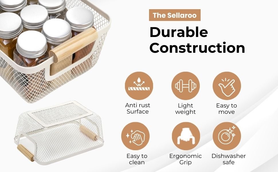 • Stylish & Modern Design: The sleek white metal mesh with natural wooden handles offers a contemporary, chic look that complements any home, kitchen.