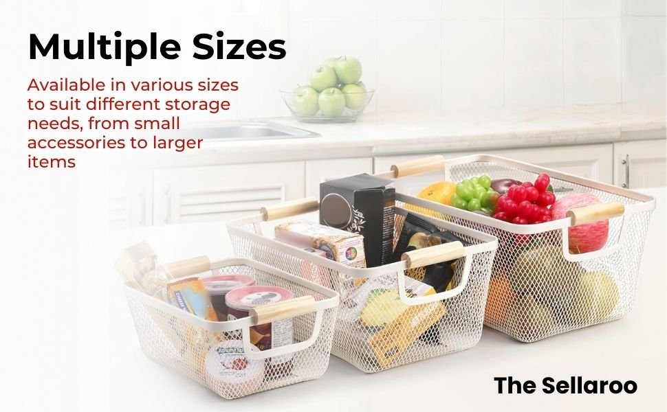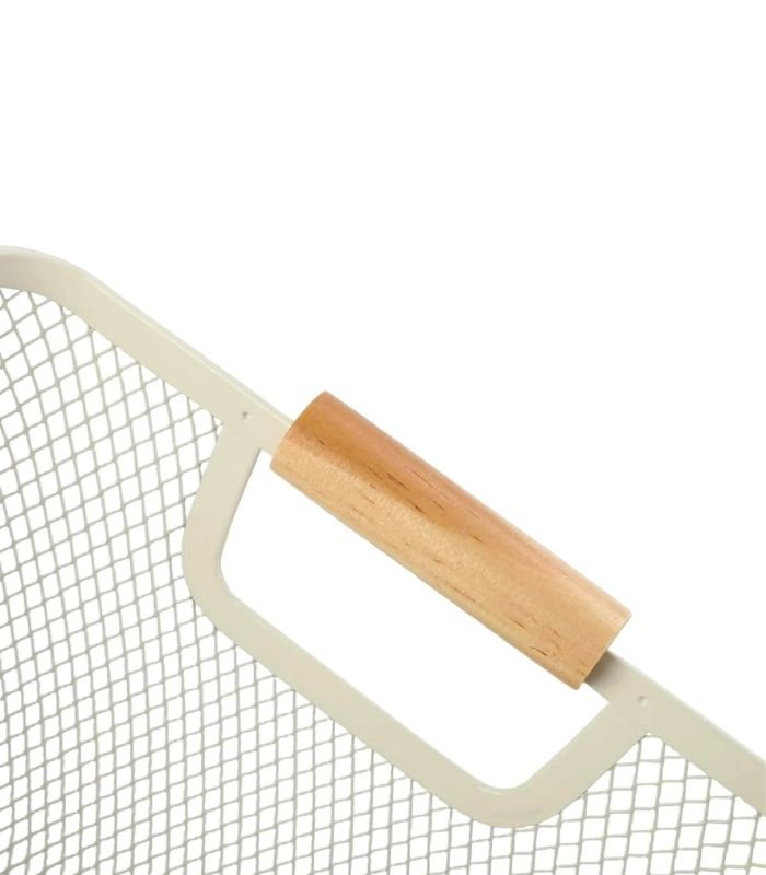 • Stylish & Modern Design: Sleek white metal mesh paired with natural wooden handles adds a contemporary touch to any room—perfect for kitchens, bathrooms, or living spaces.